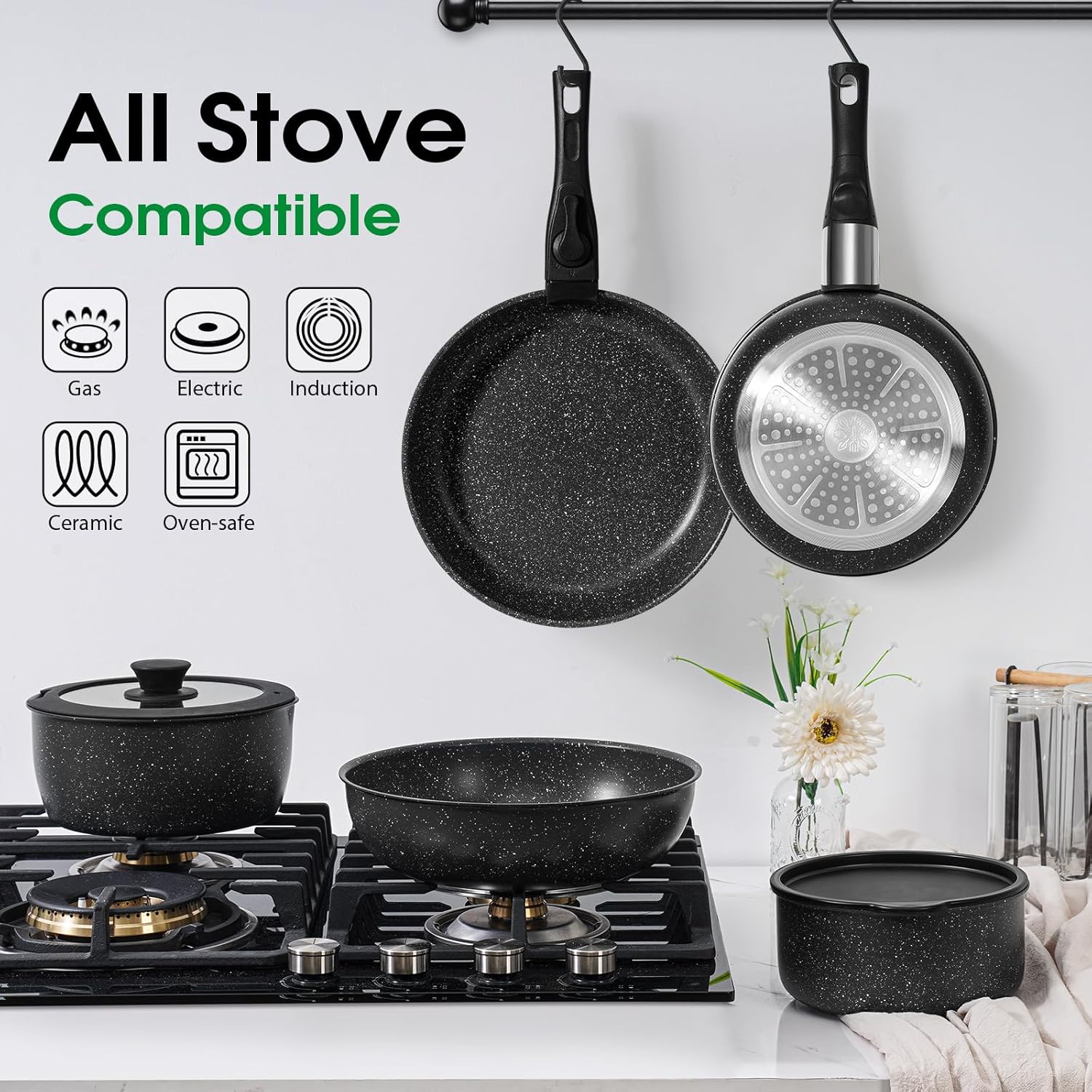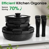 Say goodbye to cluttered cabinets with the stackable design of this induction cookware set, allowing you to keep your kitchen neat and organized. The sleek black finish adds a touch of elegance to your kitchen decor, making it a stylish and functional addition to your culinary arsenal.