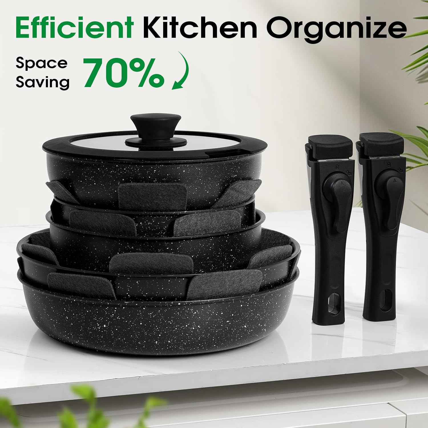 Experience the convenience of detachable handles that allow for easy storage and compact organization, perfect for RV kitchens and small spaces. The nonstick coating ensures effortless food release and easy cleanup, making your cooking process a breeze.