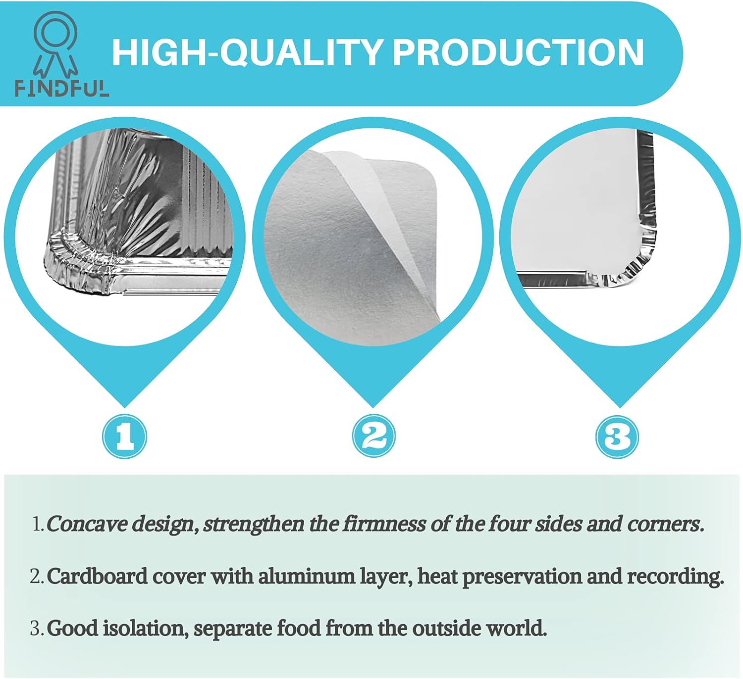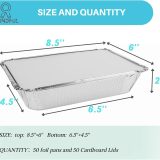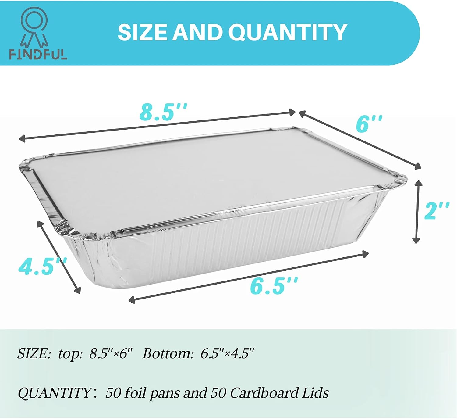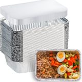 This set includes 50 durable aluminum foil pans along with 50 convenient cardboard covers, providing a complete solution for your kitchen. The disposable tin foil pans are perfect for busy kitchens, catering events, or simply storing leftovers.