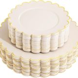 Elevate your next event with the LIYH 60 Pcs Plastic Ivory and Gold Scalloped Plates – the perfect combination of style, convenience, and durability.